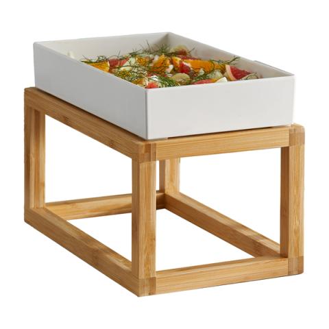 Descrizione / dati tecnici: Set di due stand in bamboo, compatibili con i vassoi Venezia nelle misure 32,5x17,6x6cm (cod.100573) e 32,5x26,5x6cm (cod.100574).