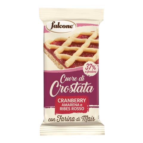 Descrizione / dati tecnici: Cuor di crostata con farcitura di cranberry, amarena e ribes rosso, con farina di mais. In pratica monoporzione da 60gr.