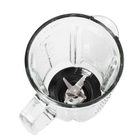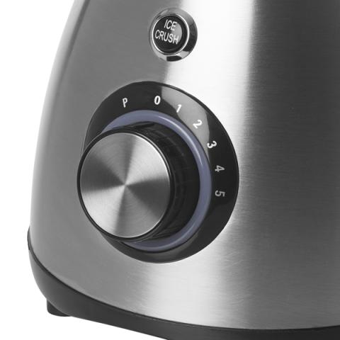 Descrizione / dati tecnici: Frullatore elettrico a 5 velocità e funzione Pulse con caraffa in vetro da 1,5L. Dotato di 6 lame in acciaio inossidabile perfette anche per tritare il ghiaccio. Luce LED di funzionamento, base in acciaio e piedini antiscivolo. Coperchio con dosatore per l'aggiunta di ingredienti durante la miscelazione.