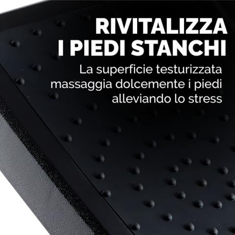 Descrizione / dati tecnici: Poggiapiedi Ultimate Professional Series con regolazione dell’altezza a forbice con 3 livelli da 100, 135 e 165mm. La piattaforma basculante, dotata di sfere massaggianti che alleviano lo stress, permette un movimento oscillante che migliora la circolazione. Dimensione piattaforma: 46x35cm.