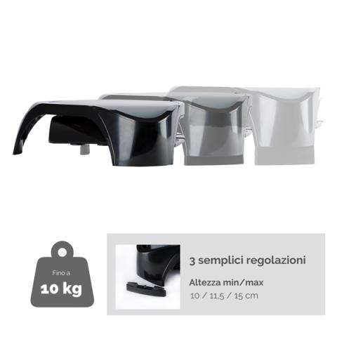 Descrizione / dati tecnici: Supporto per monitor a schermo piatto, in grado di sostenere monitor fino a 21” di formato e fino a 10kg di peso. Include una vaschetta porta documenti integrata sotto il piano d’appoggio del monitor e due vani portaoggetti ai lati, in grado di contenere penne, cellulare e altri piccoli oggetti. Compatibile e modulare con il laptop dock cod. 8020301. Tre livelli regolabili di altezza: 100, 115 e 130 mm. Dimensioni: 47,8 x 32,8 x 12 cm. Peso 1,53Kg.