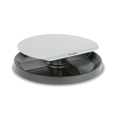 Descrizione / dati tecnici: INNOVATIVA BASE PER MONITOR CHE CONSENTE DI OTTIMIZZARE LO SPAZIO SULLA SCRIVANIA. ALTEZZA REGOLABILE DA 6 A 8CM. DIAMETRO 29,5CM. IL SISTEMA ROTANTE DEL VASSOIO MULTICOMPARTO PERMETTE DI TENERE IN ORDINE GLI OGGETTI E FAVORISCE UN FACILE ACCESSO. SOSTIENE MONITOR LCD FINO A 18 KG.