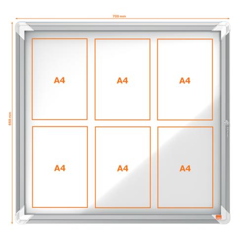 Bacheca per esterni - fondo magnetico bianco - 6 fogli A4 - orizzontale - Nobo