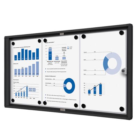 Bacheca per interni - con ante battenti - 3 fogli A4 - cornice nera - orizzontale - Showdown