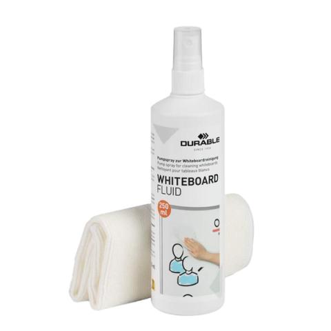 Descrizione / dati tecnici: Set completo specifico per la pulizia di lavagne bianche e planning. Rimuove efficacemente polvere, impronte e le scritte dei marcatori a secco. Pulizia profonda e duratura. Formula senza alcool. Il set contiene: 1 flacone di detergente da 250 ml e 1 panno in microfibra di qualità della misura 25 x 25 cm.