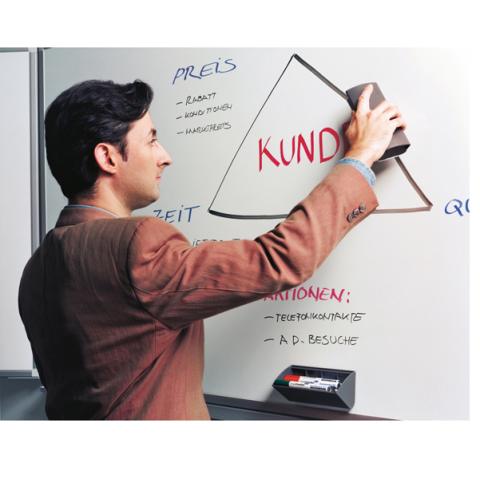Descrizione / dati tecnici: Porta marcatori con coperchio che funge anche da cancellino. Sia il contenitore che il cancellino sono magnetici. Fornito vuoto.
