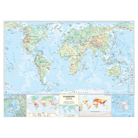 è una carta murale di grande formato, con plastificazione opaca antiriflesso e aste in plastica. La cartografia è basata sulla proiezione tripla di Winkel e rappresenta l'aspetto fisico della terra su un lato e quello politico dall'altro. L'uso dei colori è bilanciato per salvaguardare sia la brillantezza che la leggibilità della carta. Le città si distinguono per grandezza con una simbologia appropriata e in entrambe le versioni è curata la dizione italiana dei toponimi esteri. La parte fisica è completata dai riquadri dei poli, da alcune tavole tematiche riguardanti sismicità, clima, densità di popolazione e dal grafico dell'aumento mondiale della popolazione. La parte politica mostra le bandiere del mondo con i dati essenziali di tutte le nazioni.