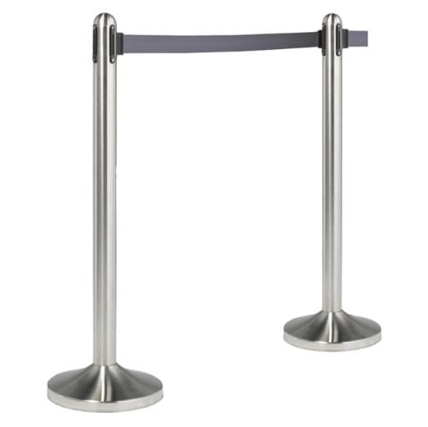 Colonnina segnapercorso cromata - altezza 100 cm - nastro retrattile grigio da 210 cm - Securit