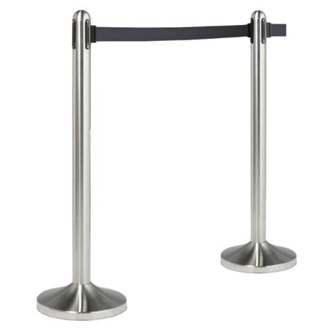 Descrizione / dati tecnici: Colonnina in acciaio inox satinato H100cm con nastro in nylon da 210cm. Ogni colonnina ha 4 diversi punti per l'aggancio del nastro retrattile. Adatta sia per uso interno che esterno. Ogni colonnina comprende un attacco extra per fissare il nastro alla parete. Peso: 12Kg.
