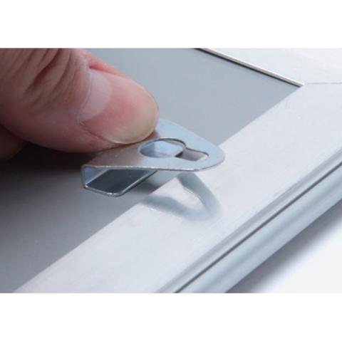 Descrizione / dati tecnici: Coppia di ganci per appendere le cornici a scatto.
