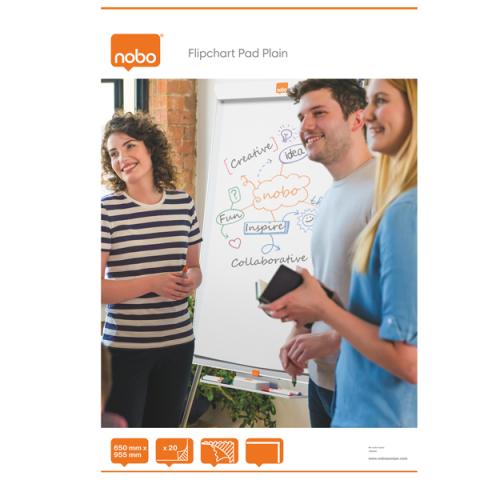 Descrizione / dati tecnici: Questi blocchi ricambio possono essere utilizzati per visualizzare informazioni o prepareare riunioni, come strumento di brainstorming o per annotare idee. Per ogni attività è disponibile un blocco adatto ad ogni esigenza. Blocco da 20 pagine bianche, carta da 70gr/m2. Dimensioni Foglio: 65x95,5 cm.