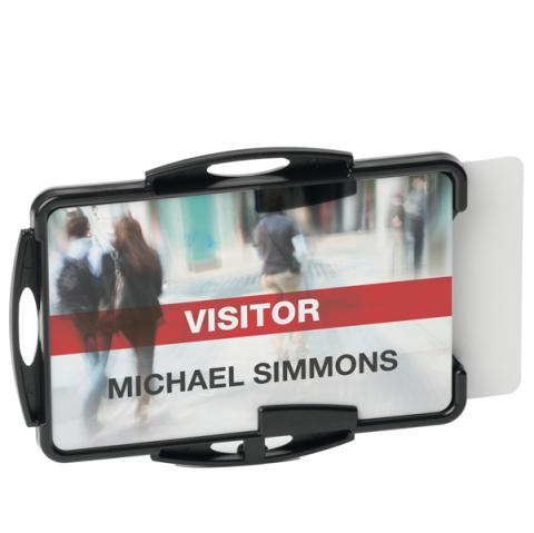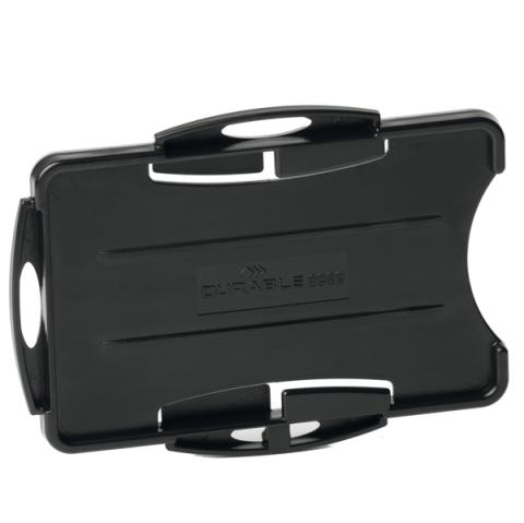 Descrizione / dati tecnici: Portabadge ideale per 2 tessere. Realizzato in plastica riciclata certificata Blue Angel. Può essere utilizzato sia in formato orizzontale che verticale. Può essere utilizzato con catenella, cordoncino in tessuto o chiocciola yo-yo . Dimensioni interne: 54 x 87 mm.