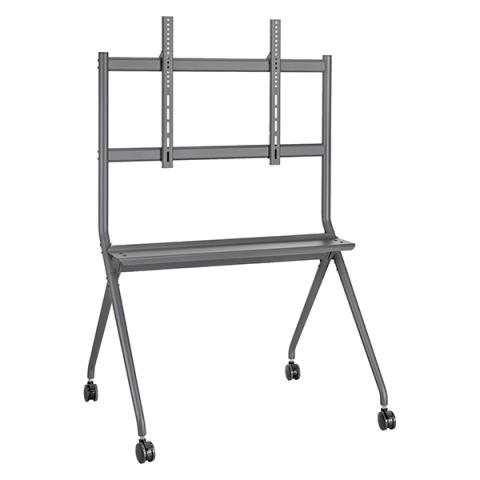 Descrizione / dati tecnici: Supporto TV / Monitor Interattivo universale su ruote: il carrello si adatta alla maggior parte degli schermi LED, LCD, OLED piatti e curvi da 50-86" con un peso fi no a 120 kg. Il supporto è dotato di un solido ripiano multimediale. Ideale per ospitare lettori DVD, attrezzature da gioco o altri dispositivi multimediali, contribuisce a mantenere tutto a portata di mano e organizzato. Fornito con tutti gli accessori necessari e una guida di installazione facile e intuitiva. Per garantire un ambiente pulito e ordinato, il carrello dispone di un sistema integrato di gestione dei cavi, che nasconde fili e cavi in modo discreto. Compatibile con le migliori marche di TV / Monitor interattivi sul mercato come Samsung, Panasonic, Sharp, Sony, Toshiba, Thomson, LG, Hisense, TCL