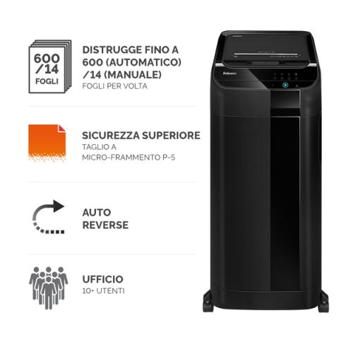 Distruggidocumenti Automax 600m - a microframmenti - 83lt - Fellowes