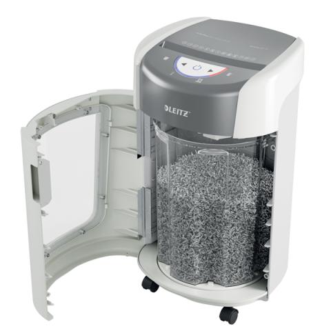 Descrizione / dati tecnici: Il distruggidocumenti Leitz IQ OptiMax, pensato per l’ufficio domestico, offre una soluzione innovativa ed elegante, garantendo massima sicurezza e tranquillità nella gestione dei documenti. Questo modello a microtaglio ad alta sicurezza (DIN P5) distrugge fino a 6 fogli A4 alla volta. Grazie all’esclusiva tecnologia BRT (Bin Rotation Technology), la capacità del contenitore aumenta del 45%* (+70 fogli A4), riducendo la frequenza dello svuotamento. Il meccanismo rotante distribuisce la carta in modo uniforme, evitando accumuli e permettendo una distruzione più efficiente. Il contenitore da 15 litri può raccogliere fino a 225 fogli A4. Autonomia di 20 minuti, assicura una triturazione affidabile e sicura per lo smaltimento quotidiano dei documenti. Colore: bianco.