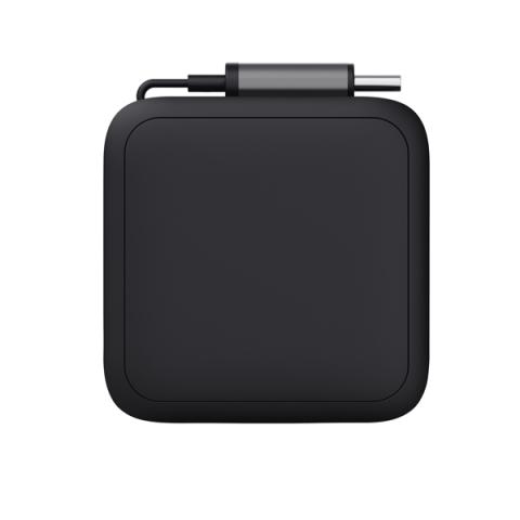 Descrizione / dati tecnici: Compatto e resistente, il Maxo da 65 W è dotato di un cavo retrattile da 67 cm testato per 10.000 cicli. Con due porte USB-C e protezioni integrate, consente di ricaricare simultaneamente laptop e smartphone in modo sicuro. Include il caricabatteria, ma non il cavo separato. Realizzato al 50% in plastica riciclata.Colore Nero.