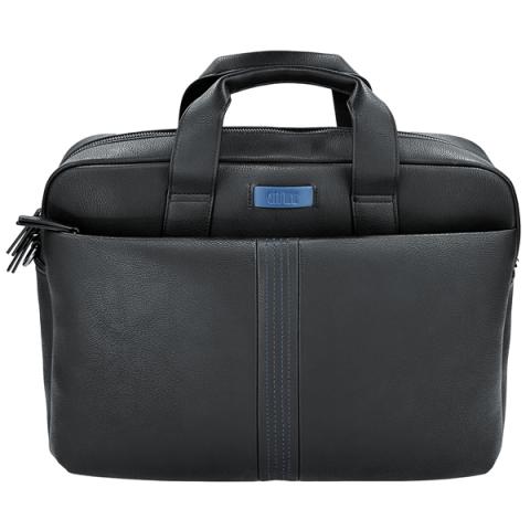 Descrizione / dati tecnici: Cartella in ecopelle con tasche interne e zip in metallo. Tasca frontale e posteriore con zip. Scomparto interno imbottito per notebook 15,6". Dimensioni: 40x30x9cm