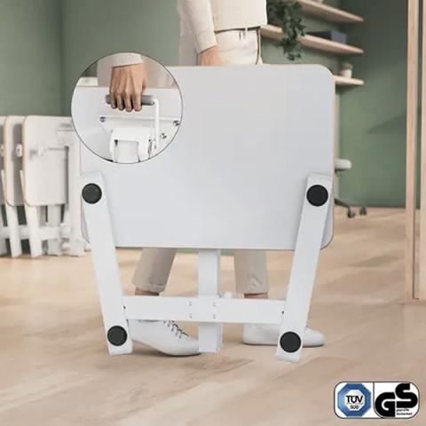 Descrizione / dati tecnici: Scrivania per laptop, ergonomica e progettata in modo intelligente per adattarsi perfettamente alla tua vita, anche negli spazi più piccoli. Si ripiega senza sforzo a soli 16 cm di larghezza, rendendola ideale da riporre accanto all'armadio, sotto il letto, il divano o nelle sale riunioni quando non viene utilizzata. Spazioso per un computer portatile con supporto, tastiera, mouse. La scrivania, certificata IGR (Istituto Tedesco per la Salute e l'Ergonomia), GS e TÜV (testata per la sicurezza), è dotata di una regolazione pneumatica dell'altezza (74-109 cm) che consente di trovare la posizione ergonomica perfetta da seduti o in piedi. Peso11 kg. Dimensioni: 65 x 46 cm.