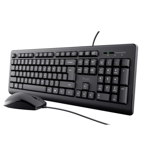 Descrizione / dati tecnici: Set tastiera e mouse a filo, pensato per permettere di lavorare in pieno comfort - Pulsanti del mouse e tasti silenziosi, per evitare di disturbare familiari o colleghi - Tastiera integrata per il massimo grado di efficienza e produttività - Design della tastiera resistente agli sversamenti, per preservarla dai liquidi - La lunghezza del cavo di 1,8 metri consente di collocare la tastiera in qualsiasi punto della scrivania - Mouse adatto a utilizzatori mancini e destri