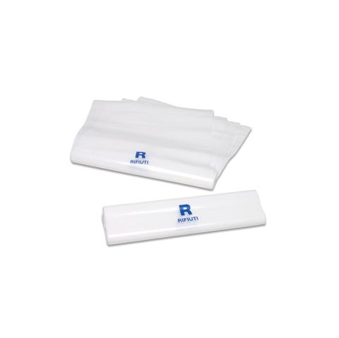 Descrizione / dati tecnici: sacchetto per rifiuti sanitari con chiusura minigrip e stampa "R Rifiuti". Formato 18x25cm.
