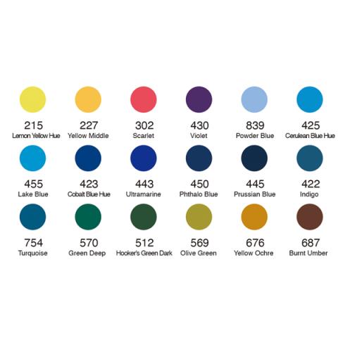 Acquerelli demi-godet - con pennello brush - in scatola di metallo - colori paesaggi assortiti - DOM - astuccio 18 colori