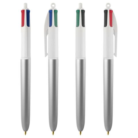Descrizione / dati tecnici: Assortimento misto di penne 4 colori con fusto ad effetto satinato glacè in 4 diversi colori: blu, verde, rosso e argento.