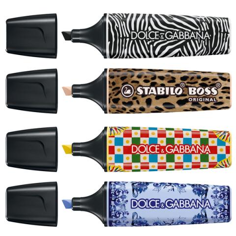 Contiene 4 evidenziatori STABILO BOSS dal design senza tempo, ispirati all'inconfondibile stile DOLCE&GABBANA.