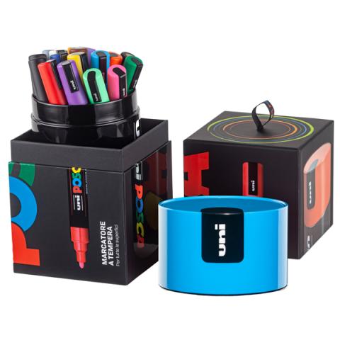 Gift Box c/coperchio blu 18 marcatori Uni Posca PC5M punta media col.ass. UNI