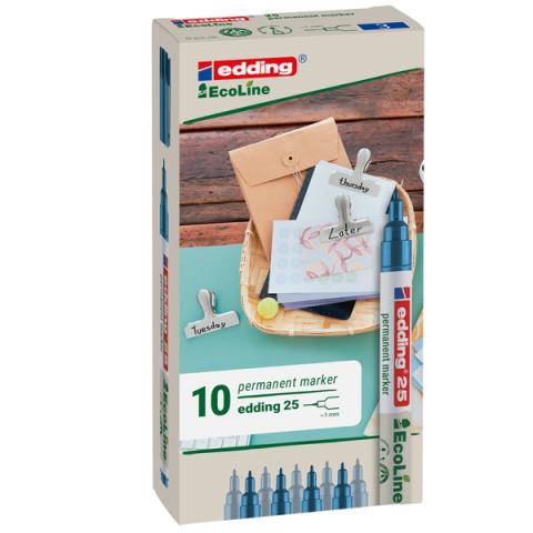 Descrizione / dati tecnici: Marcatore permanente con punta conica, inchiostro permanente resistente all'acqua. Resistente alla luce e ad asciugatura rapida. Inchiostro inodore senza aggiunta di toluene e xilene. Almeno il 90% del materiale plastico utilizzato proviene da materiale riciclato. Punta 1.0mm