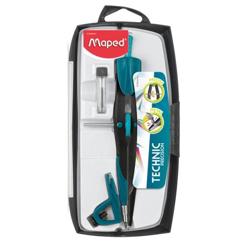 Descrizione / dati tecnici: Confezione di plastica antiurto contenente balaustrone, adattatore universale, astuccio di mine. Diametro massimo 300mm. Sistema di apertura rapida e regolazione di precisione. Lunghezza del compasso 165mm.