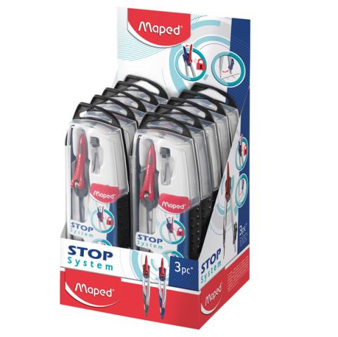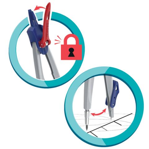 Descrizione / dati tecnici: SET DA 3 PEZZI (1 COMPASSO STOP SYSTEM, 1 ADATTATORE UNIVERSALE, 1 ASTUCCIO MINE). PARTICOLARITA' DEL COMPASSO E' LA LEVA BREVETTATA PER IL BLOCCO DELLE ASTE.
