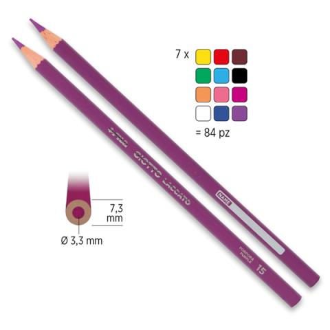 Descrizione / dati tecnici: Pastello tondo lunghezza 18cm verniciato nel colore della mina. Mina diam. 3,3mm