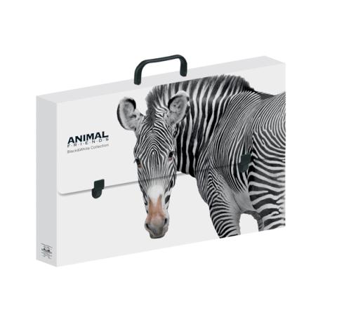 Descrizione / dati tecnici: Valigetta in polionda black & white collection. Assortimento di 8 soggetti vari. Dimensioni: 28x38cm - dorso 5cm. Dotata di 2 clip di chiusura e maniglia per il trasporto.