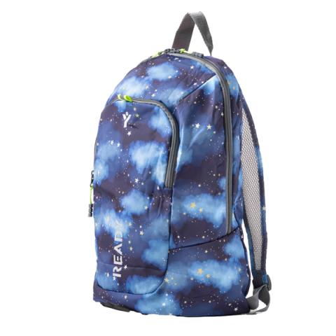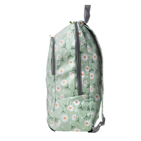 Descrizione / dati tecnici: Zaino ripiegabile in resistente tela. Dotato di spallacci traspiranti e tasca esterna multiuso. 12 fantasie assortite. Dimensioni 28x44x15cm.